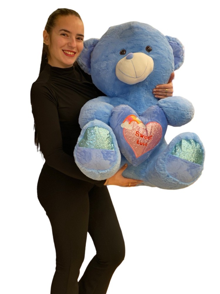 Un urs cu adevarat remarcabil! Urs de plus albastru cu inimioara in brate . Are inaltimea de 70cm . Se curata foarte usor prin stergere cu o carpa umeda sau prin spalare. Material la exterior blanita si textil. Umplutura puf siliconat . Greutate 1 kg. Recomandat copiilor cu varsta peste trei ani