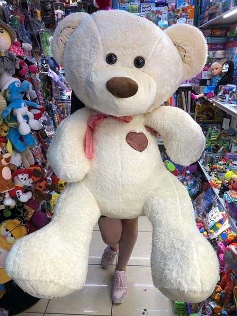 Urs de plus peticel gigant alb, lungimea 1 m si 20 centimetri de la cap pana la varful picioarelor. Este un model lat, modelul care tine ursuletul in brate are 1 m si 70 centimetri . blanita foarte placuta la atingere, umplutura puf siliconat. Se curata prin spalare sau stergere cu o carpa umeda. Recomandat copiilor cu varsta peste trei ani