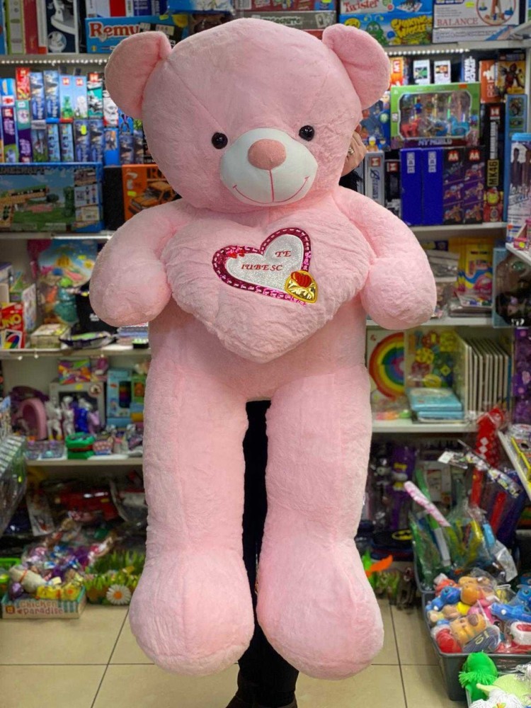 Urs imens de plus roz 1.2m cu inima Te Iubesc