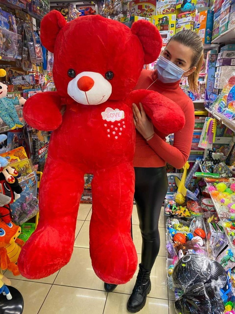 Urs rosu catifelat de plus mare Norisor 1,2m. Urs de plus mare Norisor 1,2m Greutate 4 kg. Se curăță prin spălare sau prin ștergere cu o cârpă umedă. Este recomandat pentru copii cu vârsta peste trei ani. Umplutură puf siliconat
