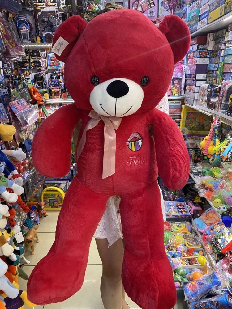 Urs ursuloi rosu intens buze curcubeu 1m. Ursulet rosu intens urias din plus cu inaltimea de 1m. Este umplut cu puf siliconat antialergic. Pe piept are brodata o gura cu buze multicolore gen curcubeu sub care scrie Hello. Se poate curata cu o carpa umeda prin stergere.
