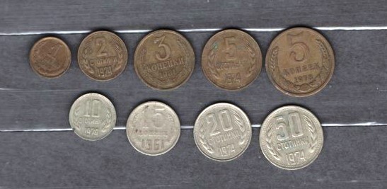 URSS (RUSIA) - LOT 9 MONEDE 1, 2, 3, 5, 5, 10, 15, 20, 50 COPEICI (2)