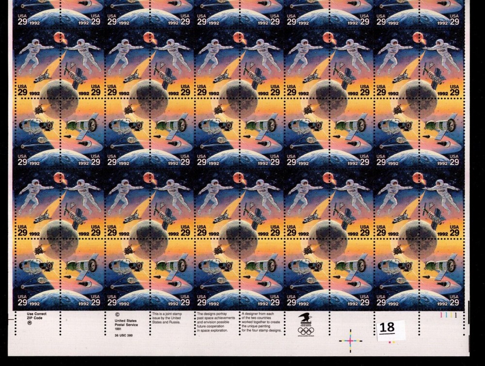 USA-1992-COSMOS-COSMONAUTI-NAVA SPATIALA-Bloc cu 50 timbre de 18 centi MNH