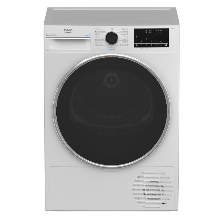 Uscator de rufe BEKO B3T48233WEU, 8 kg, 15 programe, Pompa de caldura, Aquawave, Clasa D, alb
