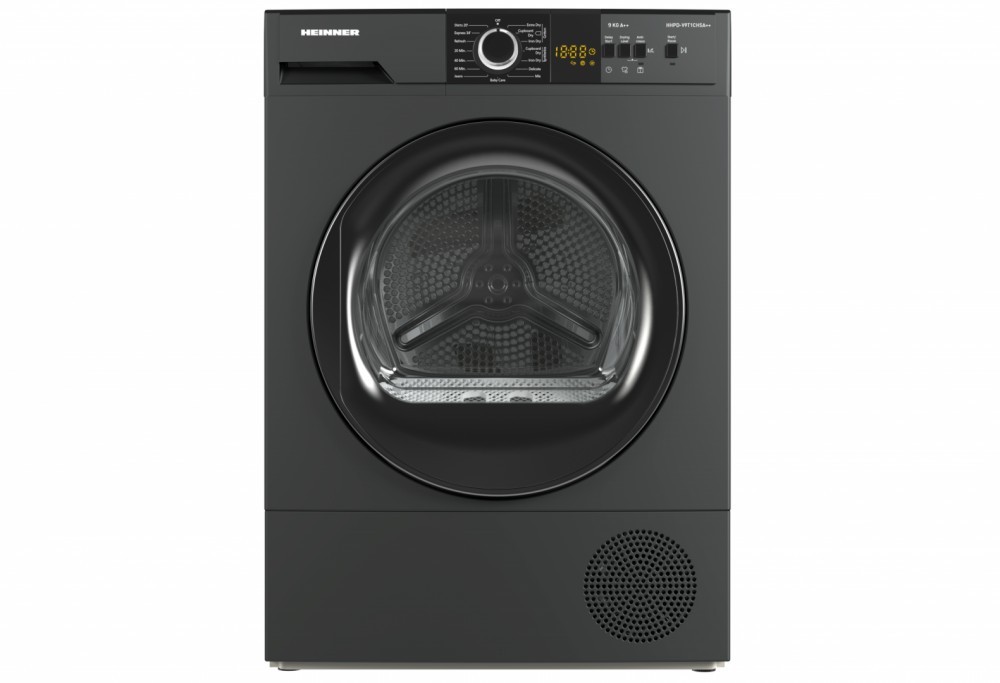 USCATOR DE RUFE CU POMPA DE CALDURA HEINNER HHPD-V9T1CHSA++, CAPACITATE INCARCARE 9KG, CLASA ENERGETICA A+/E, 15 PROGRAME DE USCARE, DISPLAY LED, PROGRAM RAPID CAMASI 20 MIN, PROGRAM EXPRES 34 MIN, PROGRAM BABY CARE, FUNCTIE START INTARZIAT, FUNCTIE ANTI-SIFONARE, LUMINA CUVA, SELECTOR NIVEL USCARE, INDICATOR CURATARE FILTRU SCAME, INDICATOR REZERVOR COLECTARE APA PLIN, BLOCARE ACCES COPII, DIMENSIUNI (LXAXI): 59.6X60.9X84.5 CM, CULOARE: GRI
