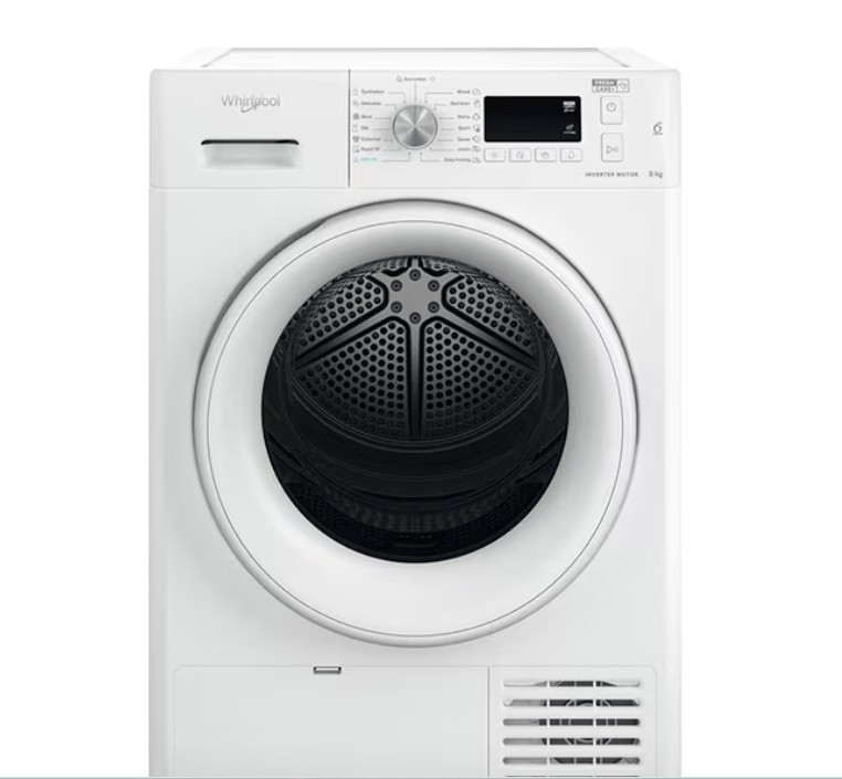 Uscator de rufe WHIRLPOOL FFT M11 82 EE, 6th Sense, Pompa de caldura, 8 kg, 15 programe, Clasa A++, alb