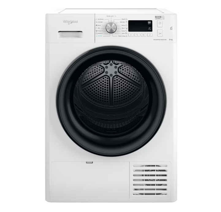 Uscator de rufe Whirlpool FFTM1182BEE, Pompa de caldura, 8 kg, Clasa E, Freshcare+, Tehnologia al 6-lea Simt, Alb