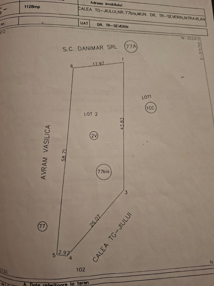 Tg-jiului,nr.77bis,Municipiul Drobeta-Turnu Severin. Suprafața de