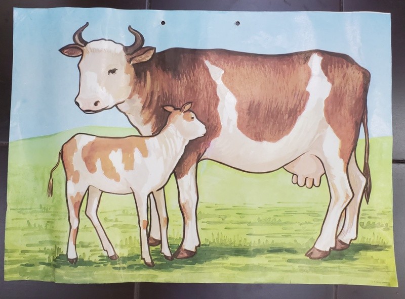 VACA CU VITEL / GASCA , PLANSA DIDACTICA DUBLA , FATA / VERSO , NR. 61 , ANII '90