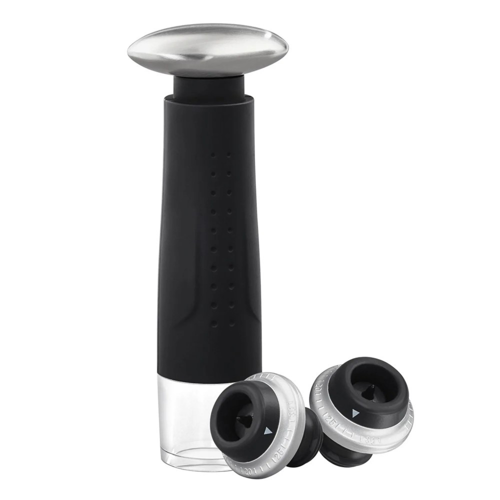 Die Bedienung der Pumpe ist denkbar einfach – setzen Sie einfach den Stopfen in den Hals der geöffneten Weinflasche, platzieren Sie die Pumpe und pumpen Sie einige Male, um ein effektives Vakuum zu erzeugen. Die Pumpe wird mit zwei Stopfen geliefert, damit Sie mehrere Flaschen gleichzeitig vakuumieren können, was besonders praktisch ist.