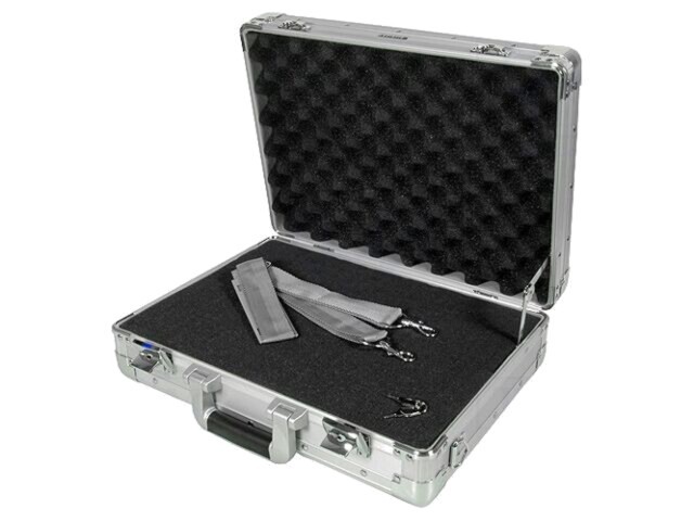 Valijoara aluminiu pentru unelte 450x330x135mm ENGINEER este realizată din aluminiu rezistent, oferind durabilitate și protecție superioară pentru conținut. Dimensiunile exterioare de 450x330x135 mm și cele interioare de 435x314x120 mm asigură un spațiu generos și bine organizat. Dispune de două închizători metalice cu cheie pentru securitate sporită și este prevăzută cu piciorușe pentru a permite așezarea verticală stabilă. Interiorul este căptușit cu țesătură, protejând uneltele de zgârieturi. Sistemul interior include un burete superior de presare, un palet superior demontabil echipat cu 10 buzunare și 12 suporturi pentru instrumente, precum și doi bureți liberi de 30 mm grosime, cu tăieturi adaptabile pentru fixarea optimă a uneltelor. Colțurile întărite suplimentar sporesc rezistența la șocuri și uzură. Valijoara este prevăzută cu o curea pentru umăr, facilitând transportul confortabil și practic. Designul compact și funcțional face din acest container soluția ideală pentru organizare și protecție.