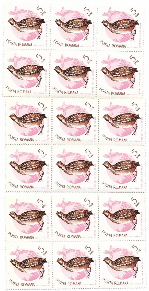 Vanatul migrator, 1965, valoarea de 5 B, 77 buc. in blocuri, neobliterate.