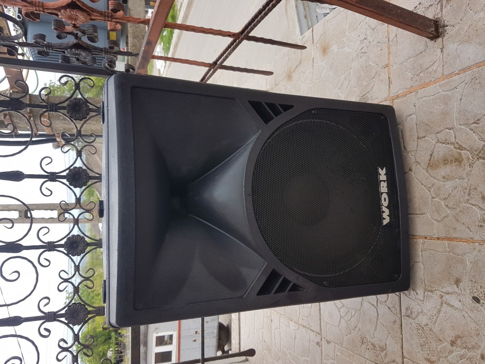 Vând boxe Work, stare foarte buna, puterea se vede în poze, suporturi homemade, 2 cabluri de aproximativ 10m lungime, 5 mufe de conectare