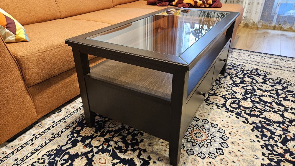 Masuta cafea Ikea, culoare mahon, lemn+mdf, dimensiuni 105×55 cm,