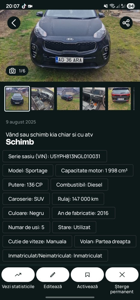 kia sportage motor 2.0 diesel 4x4 136cai full piele 150000km reali