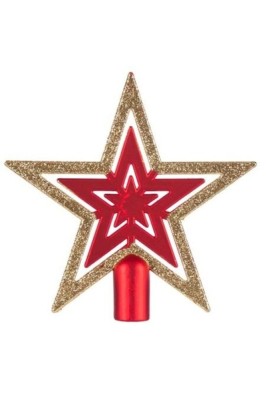 Varf pentru bradul de Craciun, stea cu sclipici, rosu/auriu, 16.5 cm