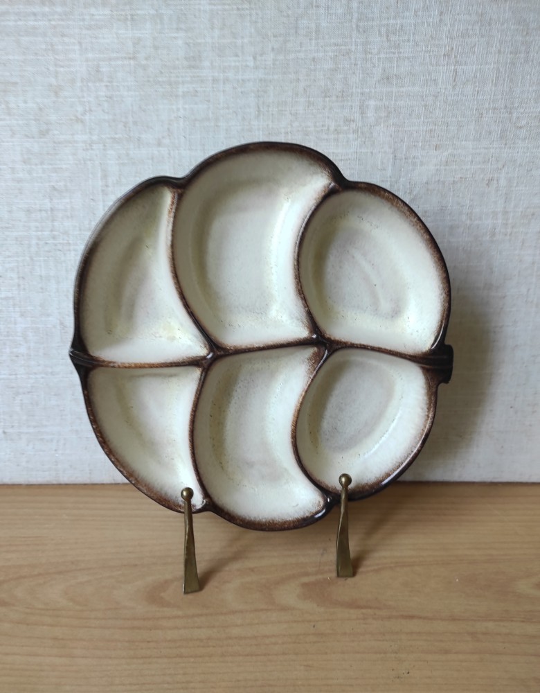 Vas ceramica foarte frumos, compartimentat, pentru aperitive, sărățele, etc. Frumos și ca obiect decor.
