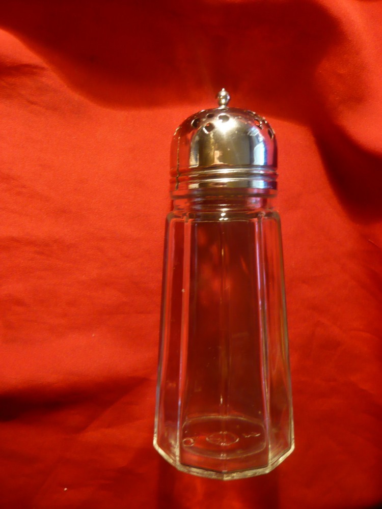 Vas de sticla pt. sare , capac metalic , h= 14,5 cm