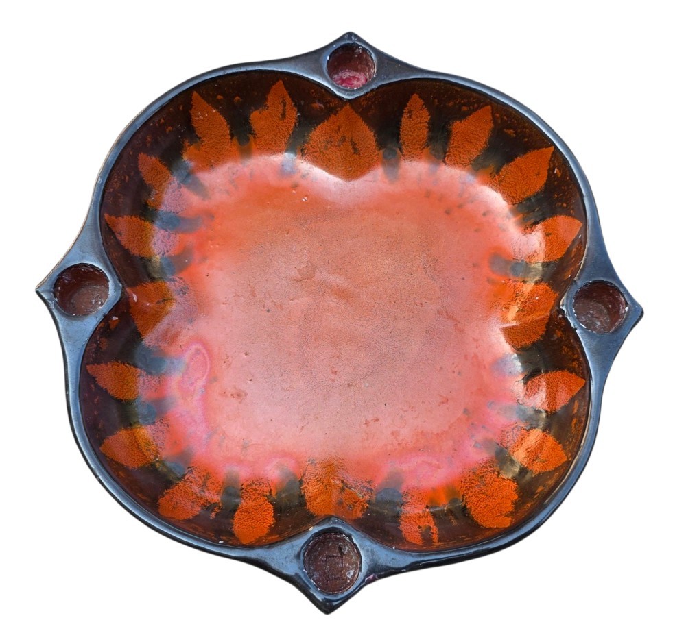 Vas-suport vintage lumânări din ceramică, creat de Harald Ostergren pentru renumita manufactură Upsala Ekeby în jurul anului 1930. Un suport de Advent cu model modernist și influențe Art Deco cu patru spații dedicate lumânărilor.