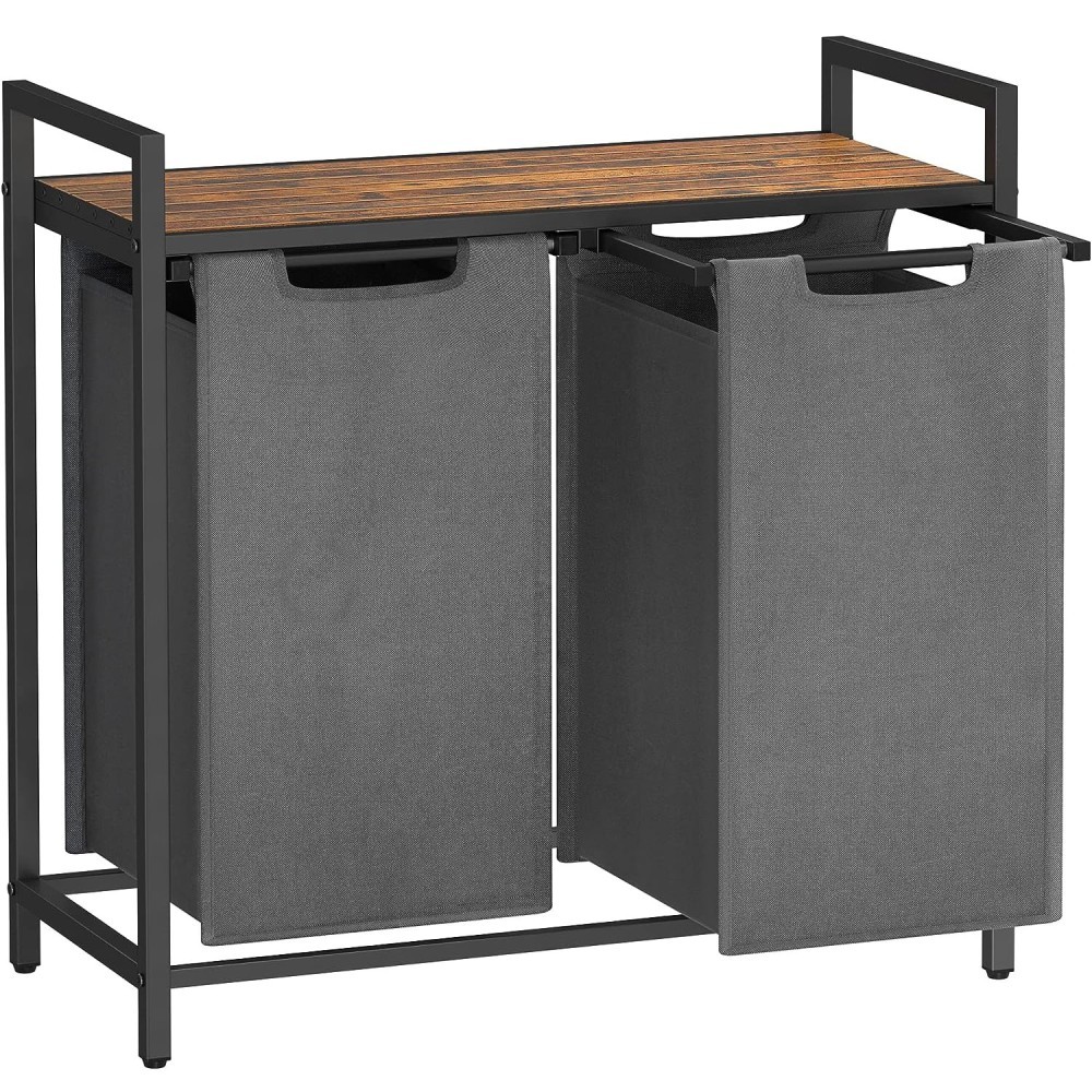 VASAGLE Cos de rufe, 2 compartimente, saci de rufe detasabili, raft, cadru metalic, 2x46L, 73x33x72 cm, maro rustic si gri Household NewTrend