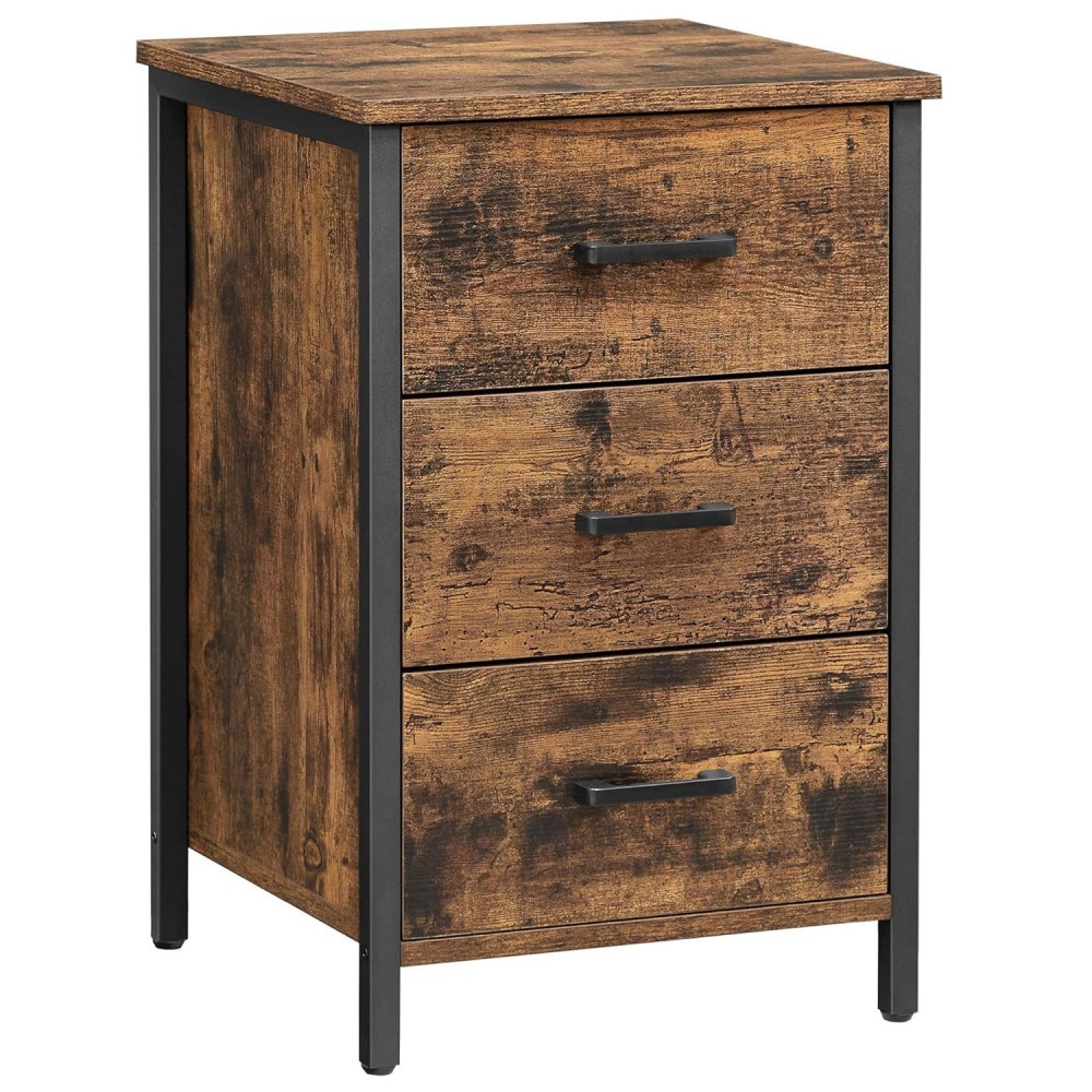 VASAGLE Noptiera cu 3 sertare pentru dormitor, design industrial, 40x40x60cm, maro rustic