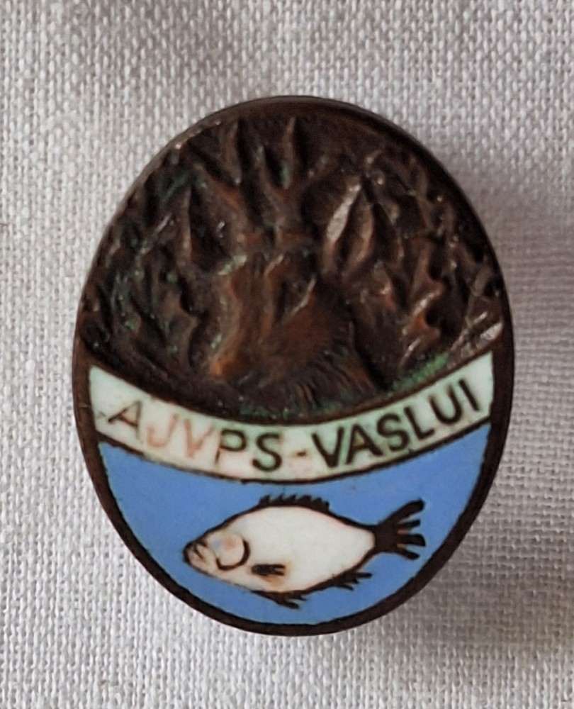 VASLUI - AJVPS - RSR, anii 1970, Insigna Vanatoare si Pescuit - piesa superba, rara
