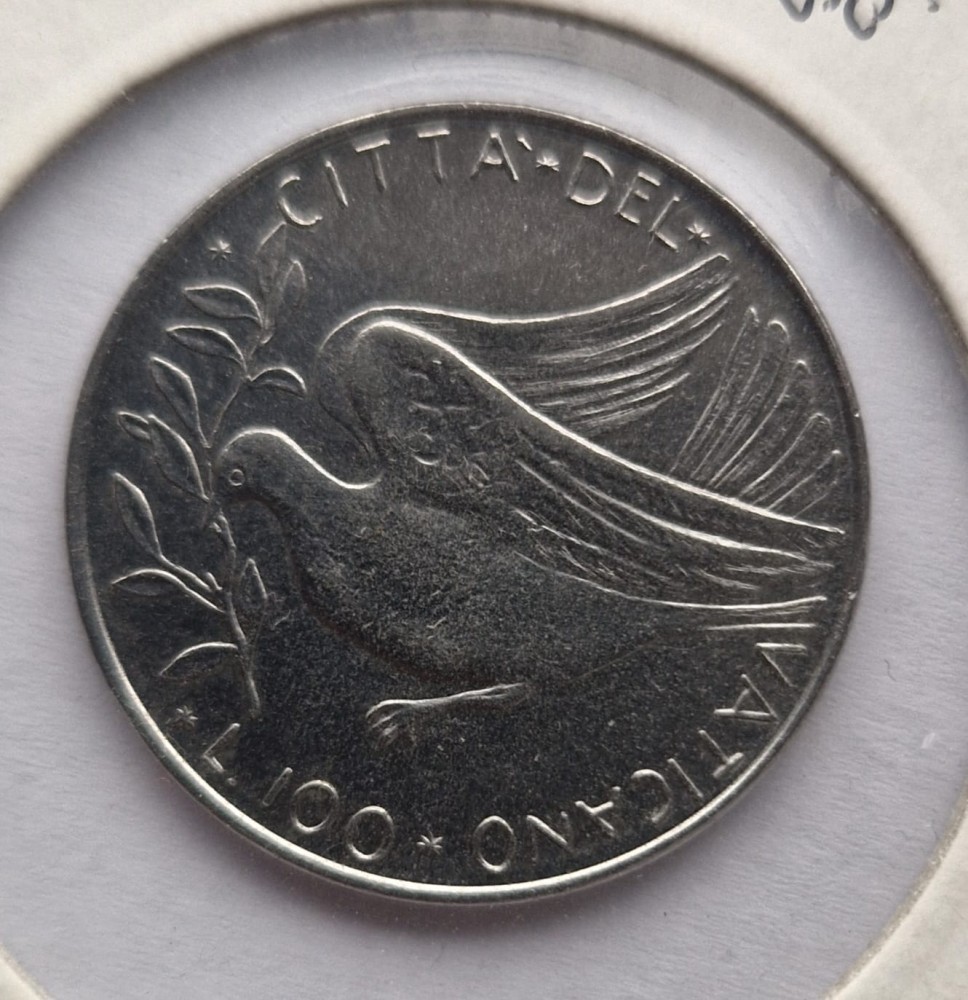 Vatican 100 Lire 1975 moneda otel km # 122 tiraj mic rara Paul VI