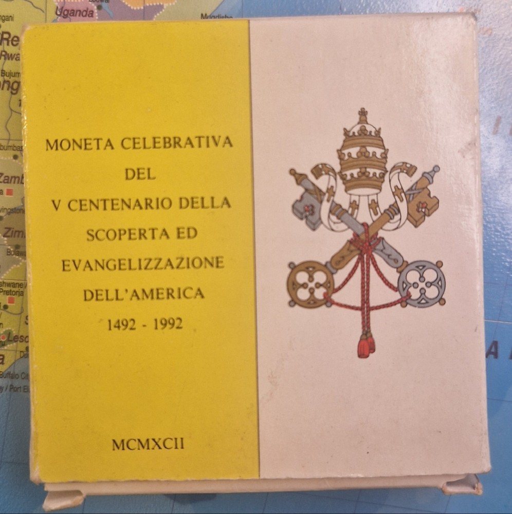 Vatican 500 Lire, Argint, in Folder, 1992 KM#235, John Paul II (America Evangelization)