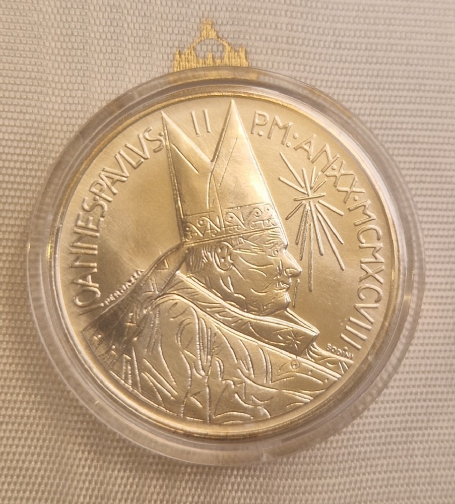 Vatican 500 Lire, Argint, in Folder, 1998 KM#292, John Paul II (Exposition of the Shroud)