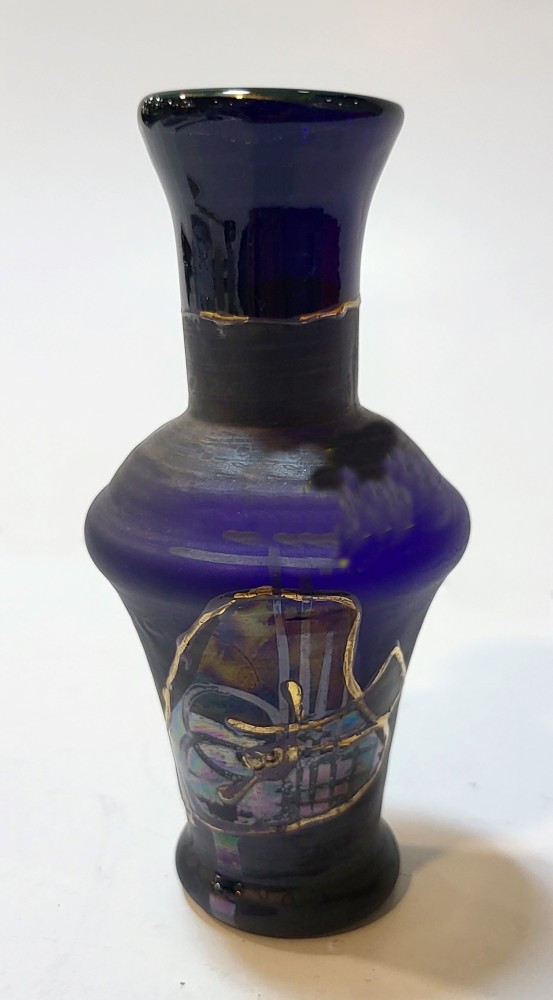Vază mică din sticlă colorata in masa cu albastru de cobalt
