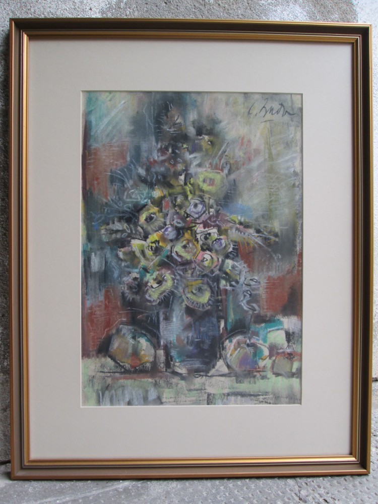 Natura statica, pastel realizat de Laurentiu Buda (1931 - 1992), pictor clujean.