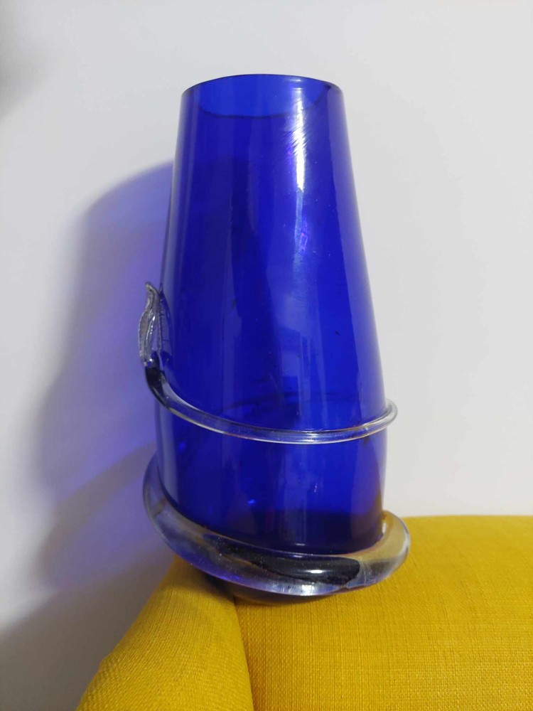 Vaza flori model antic,sticla Murano Oribinal,masiva albastra cu SARPE Incolacit