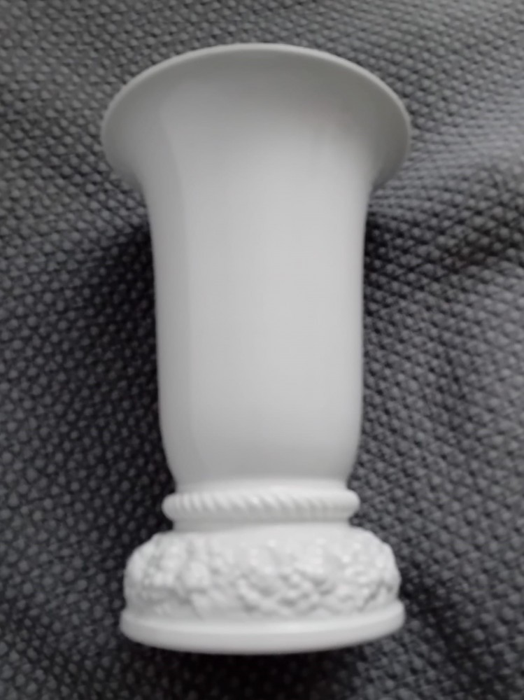 Vaza portelan Rosenthal model Maria, cu marcaj la fund care indica fabricartea intre anii 1930-1950, culoare alba, cu inaltimea de 24 cm si deschiderea gurii 16 cm, folosit in stare buna