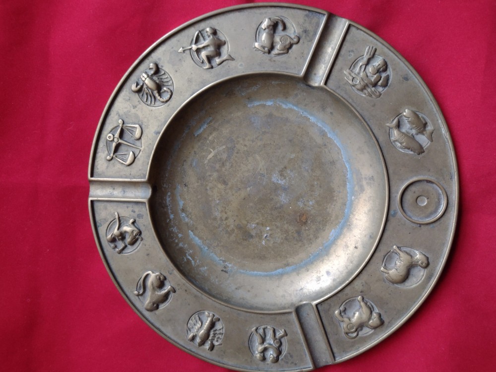 Veche scrumiera Bronz cu zodiac,mărime ft mare