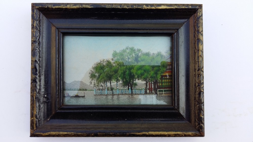 VECHE STAMPA ORIENTALA PE MATASE - PE VERSO INSCRISURI