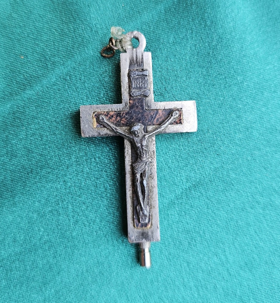 VECHI CRUCIFIX - PANDANTIV CU PĂMÂNT DIN CATACOMBELE ROMEI.
