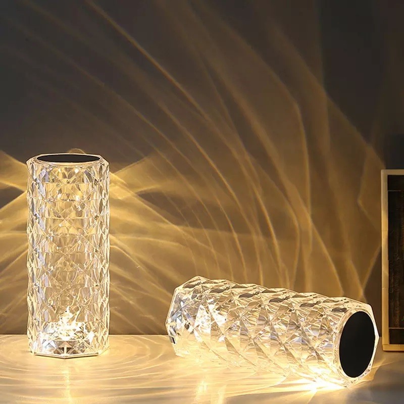 Veioza de masa, decorativa, cu telecomanda, atenuare prin atingere, din sticla, cu 16 culori, transparent