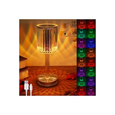 Veioza multicolor, din sticla, cu touch si telecomanda, reincarcabila, 16 culori, 4 moduri de tranzitie intre culori, alb