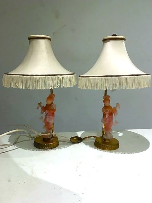Veioze gheisa Art Nouveau, sculptură sticla Murano, alamă, vintage