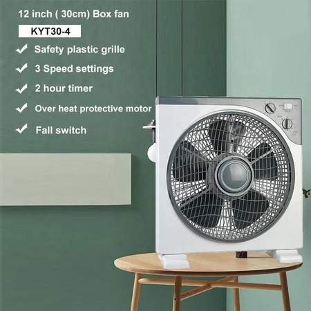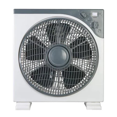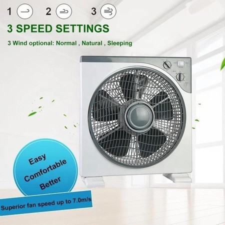 Ventilator box, cu grila rotativa, cu 3 trepte de viteza, timer reglabil incorporat, alb/gri
