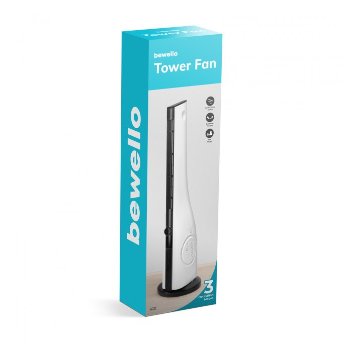 Ventilator coloana cu aspect modern, care iti va creste confortul. Nu exista lame rotative vizibile, ventilatorul poate fi actionat in siguranta (chiar si de copii).