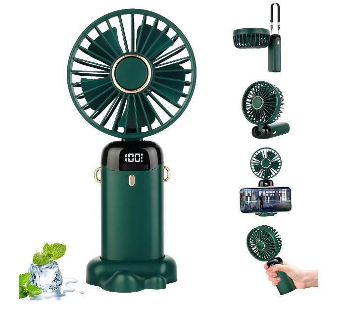 Ventilator Machiaj Ultra Portabil, 5 Trepte de Viteza, Pliabil, cu Ecran LCD, Verde