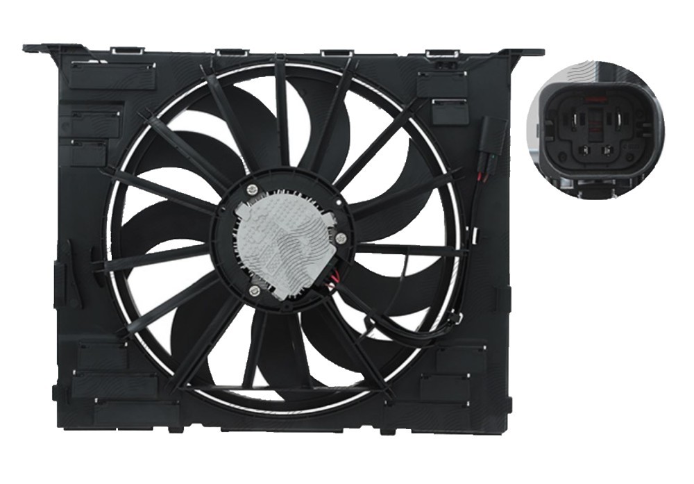 Ventilator radiator BMW Seria 5 G30 17-23, 6 Gt (G32) 17-, 7 G11 15-, motor: 1.6 T, 2.0 T, 3.0 R6 T, 495 mm; 4 pini, 17427953401; 17428619627