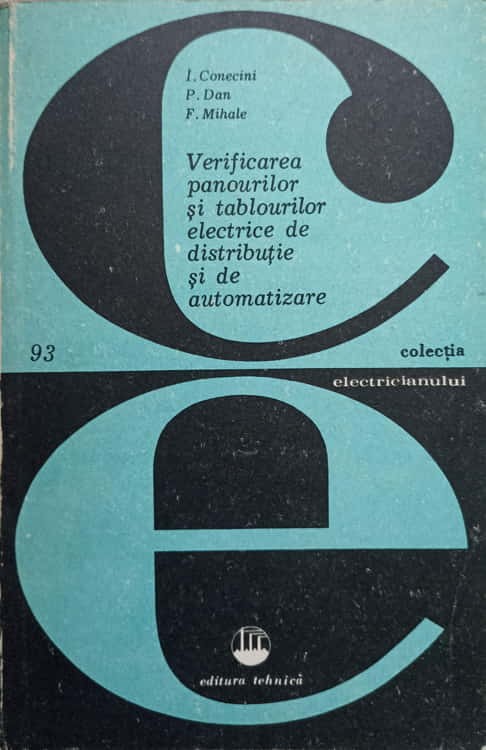 VERIFICAREA PANOURILOR SI TABLOURILOR ELECTRICE DE DISTRIBUTIE SI DE AUTOMATIZARE-I. CONECINI, P. DAN, F. M-276906