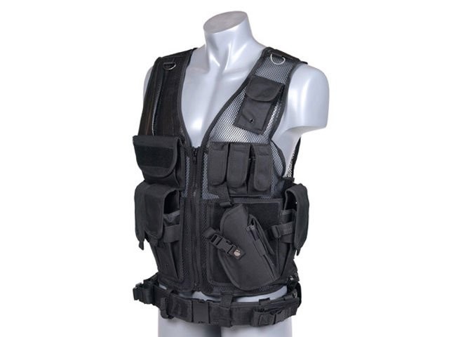 Vesta tactica cu buzunare, curea si toc de pistol.