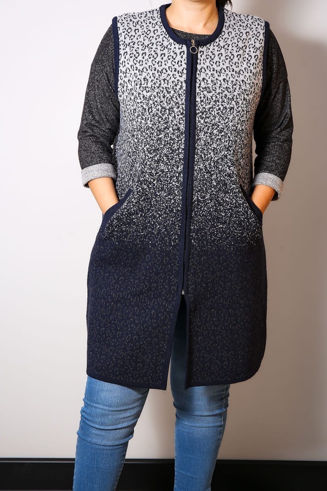Vesta Tricotata Lunga Fermoar NaviMarimea