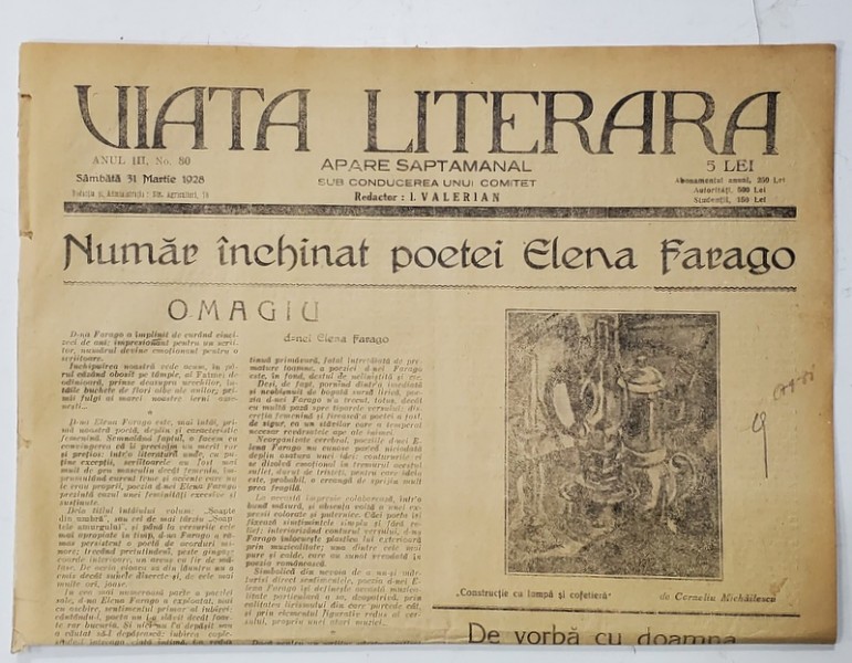 VIATA LITERARA , SUB CONDUCEREA UNUI COMITET , SAPTAMANAL , ANUL III , NR.80 , 31 MARTIE , 1928