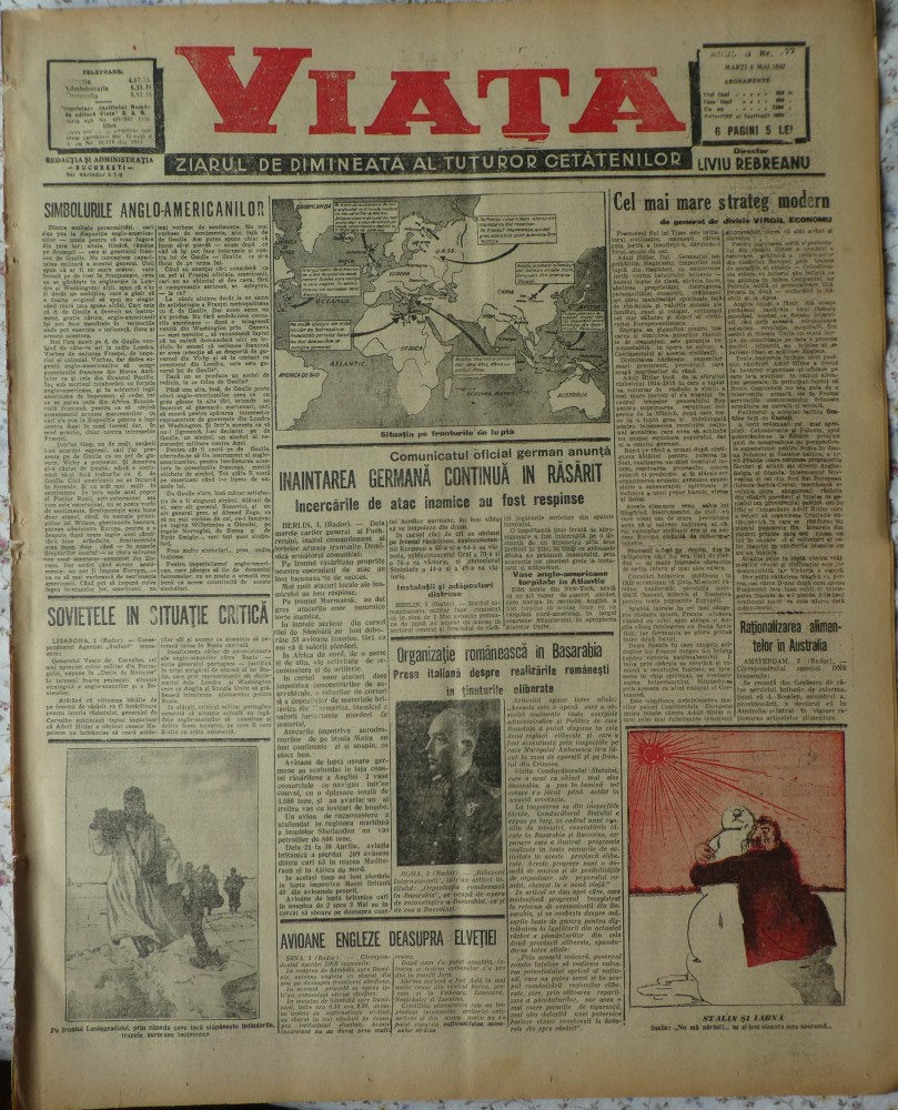 Viata, ziarul de dimineata, director Liviu Rebreanu, 5 Mai 1942