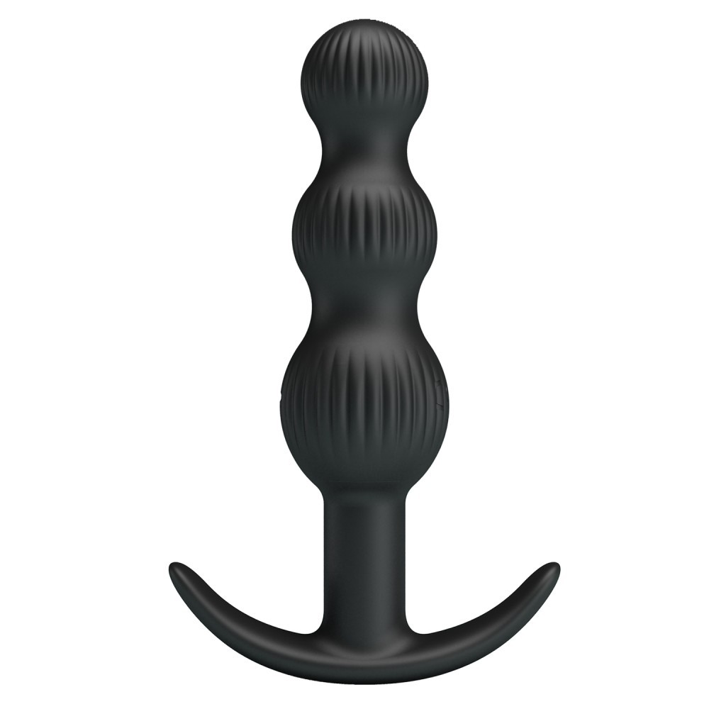 Vibrator anal stil sirag de bile, confectionat din silicon foarte fin si placut la atingere. Este o jucarie sexuala unisex, fiind potrivita a se folosi atat pentru femei cat si pentru barbati, oferind o stimulare intensa si senzatii noi de placere anala. Designul se aseamana cu un ansamblu de bile graduale, avand varful mai mic in diametru, care se mareste progresiv pana la baza la diametrul maxim. Acest aspect ajuta la o utilizare placuta, fara a crea disconfort sau neplacere. Totodata, dispune de striatii verticale dispuse pe fiecare din cele 3 formatiuni, ceea ce ofera un plus de stimulare. Baza are o forma concava si ofera o utilizare sigura, prevenind alunecarea jucariei inauntru. Totodata, baza poate fi folosita si pe post de maner pentru sustinerea vibratorului. Dispune de 10 tipuri de vibratii ce se actioneaza din butonul intuitiv pe suprafata produsului. Se incarca prin cablul USB inclus, se manevreaza usor si se poate depozita oriunde doriti, departe de privirile celor din jur. Se recomanda utilizarea impreuna cu lubrifianti pe baza de apa si igienizarea produsului, inainte si dupa utilizare, cu solutii speciale pentru curatarea jucariilor erotice. Dimensiunile exacte se regasesc in imaginea alaturata. | Material: Silicon | Lungime: 11 cm | Diametru: 2 cm | USB: Da | Culoare: Negru
