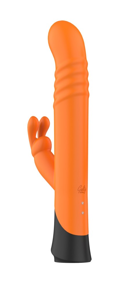 Vibrator Iepuras Nova, 9 Moduri Vibratii, 4 Viteze Impingere, Silicon, USB, Portocaliu/Negru, 24.6 cm, Guilty Toys, Cosmic Love